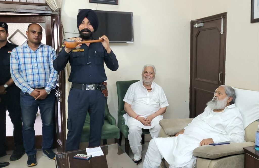 –हरियाणा के ऊर्जा, परिवहन एवं श्रम मंत्री अनिल विज की सुरक्षा में तैनात पीएसओ एएसआई भूपिंद्र सिंह ने आज ऊर्जा मंत्री के समक्ष देशभक्ति पर आधारित पंजाबी गीत गुनाया।