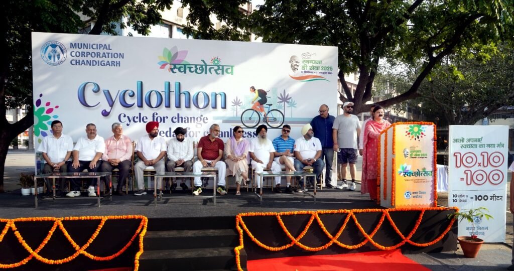 चंडीगढ़ ( ब्यूरो चीफ अच्छेलाल ) स्वच्छता के प्रति नागरिक दायित्व और प्रतिबद्धता का जीवंत प्रदर्शन करते हुए, चंडीगढ़ नगर निगम ने चंडीगढ़ व्यापार मंडल (सीबीएम) के सहयोग से चल रहे ‘स्वच्छता ही सेवा पखवाड़ा’ पहल के तहत सेक्टर 17 प्लाज़ा में एक साइक्लोथॉन का आयोजन किया।