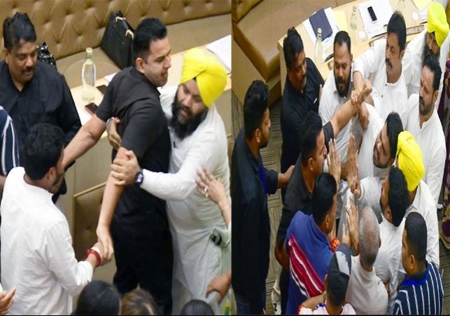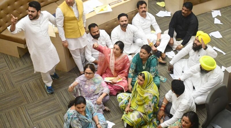 कांग्रेस-आप पार्षदों ने मेयर के सामने कागज फाड़कर उछाले, मार्शलों से धक्का-मुक्की