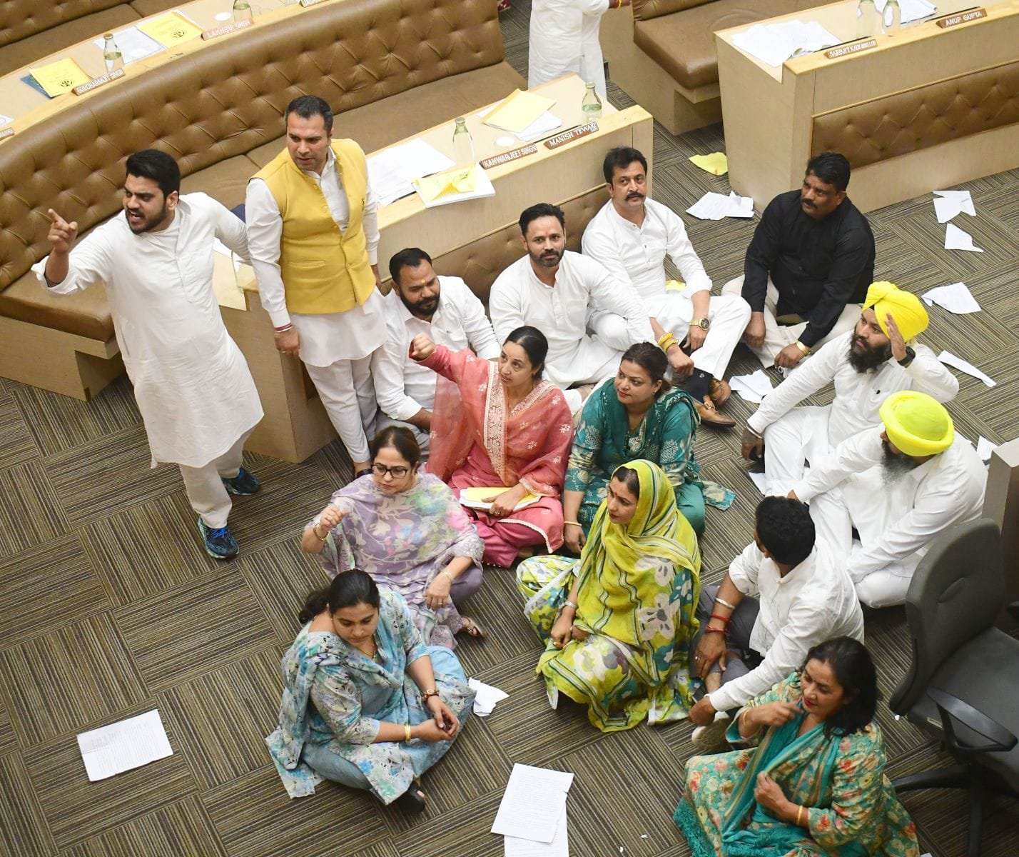कांग्रेस-आप पार्षदों ने मेयर के सामने कागज फाड़कर उछाले, मार्शलों से धक्का-मुक्की