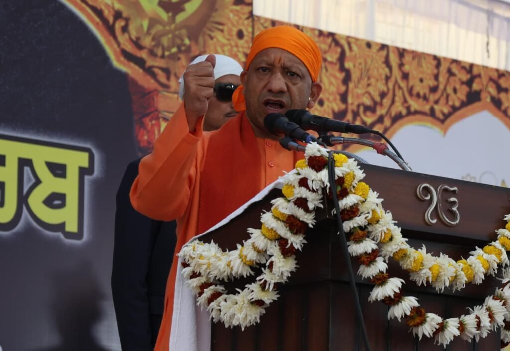 मुख्यमंत्री योगी आदित्यनाथ ने कहा कि यह मेरा सौभाग्य है कि अयोध्या की पावन धरती पर आपके बीच आया हूं। देश के यशस्वी प्रधानमंत्री नरेंद्र मोदी आज अयोध्या आए थे। श्रीरामजन्मभूमि पर भगवान श्रीराम के भव्य मंदिर का निर्माण कार्य पूर्ण होने के उपलक्ष्य में सनातन के भगवा ध्वज का आरोहण राम मंदिर के शिखर पर एक भव्य समारोह में हुआ है। यही वह भगवा ध्वज है जिसकी रक्षा करने के लिए सिख गुरुओं की परंपरा पीढ़ी दर पीढ़ी बलिदान करती आई है। याद करिए, वर्ष 1510 से लेकर 1515 के बीच प्रथम गुरु नानक देव जी महाराज अयोध्या धाम में श्रीरामजन्मभूमि मंदिर का दर्शन करने जाते हैं। वर्ष 1528 में विदेशी आक्रांता बाबर के सिपहसालार द्वारा मंदिर को तोड़ा गया। उस समय बाबर के अत्याचार को देखते हुए गुरु नानक देव महाराज ने बाबर को जाबर कहकर उसके कुकृत्यों का विरोध किया था। अयोध्या में जब-जब राम जन्मभूमि के लिए संघर्ष हुए, तब सिख गुरुओं, योद्धाओं, संतों, निहंगों, राजाओं व सामान्य नागरिकों ने बलिदान देने में एक क्षण भी नहीं सोचा।