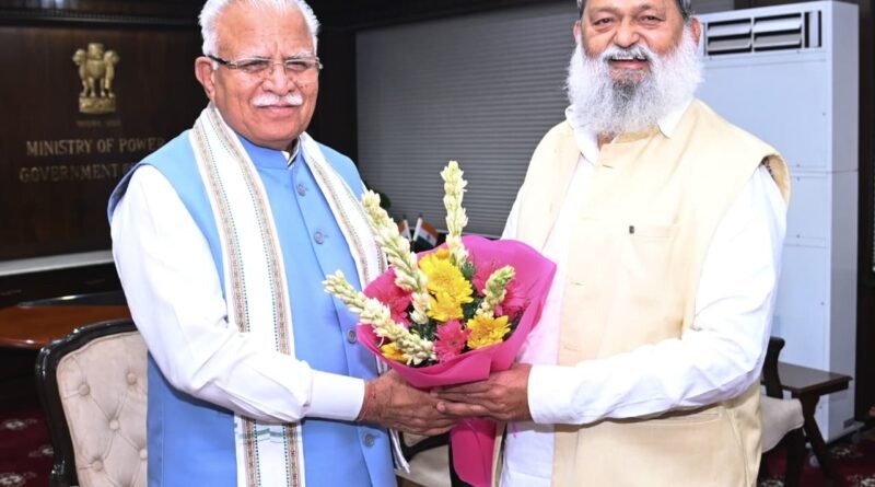 हरियाणा के ऊर्जा मंत्री श्री अनिल विज जी आज देर सांय नई दिल्ली में केन्द्रीय ऊर्जा मंत्री श्री मनोहर लाल जी से मिले।