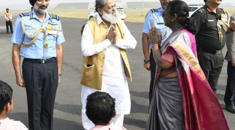 राष्ट्रपति द्रौपदी मुर्मू का अंबाला वायुसेना स्टेशन पर आगमन — हरियाणा के ऊर्जा मंत्री अनिल विज ने किया स्वागत