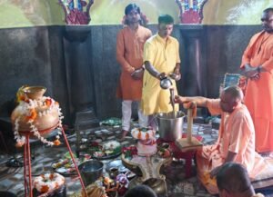 सीएम ने देवीपाटन मंदिर में की पूजा-अर्चना एवं रूद्राभिषेक, गौशाला में गायों को खिलाया गुड़ और चारा