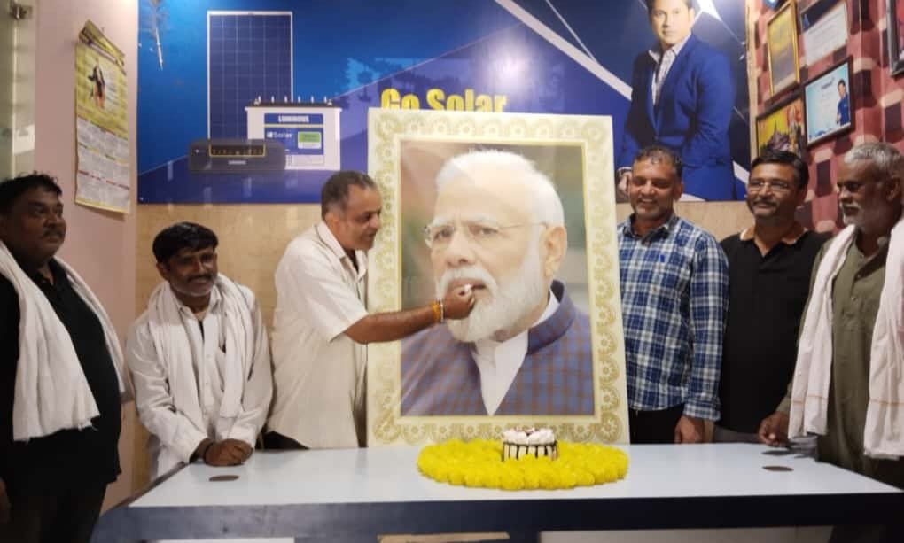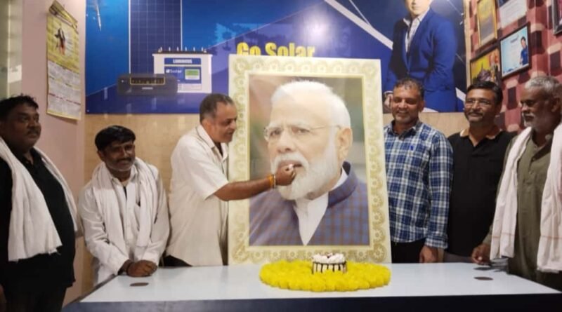 भाजपाइयों ने केक काट कर मनाया प्रधानमंत्री नरेंद्र मोदी का जन्मदिन