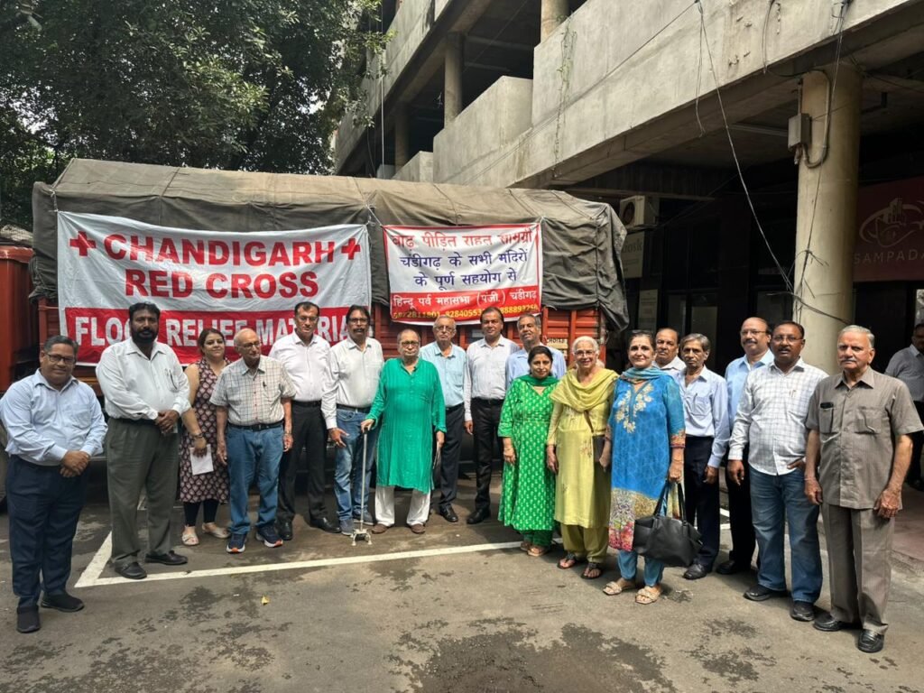 चण्डीगढ़ (सुनील कुमार ) हिंदू पर्व महासभा, चण्डीगढ़ द्वारा पंजाब के बाढ़ पीड़ितों के लिए राहत सामग्री, जिनमें मुख्य रूप से दवाइयां, कंबल, गद्दे, स्टील के ग्लास व प्लेटस, कोकोनट ऑयल, जूते व चप्पलें इत्यादि एकत्र किए गए। राहत सामग्री से लदे ट्रकों को चण्डीगढ़ रेड क्रॉस के माध्यम से आज डिप्टी कमिश्नर निशांत कुमार यादव, आईएएस ने झंडा दिखाकर रवाना किया।