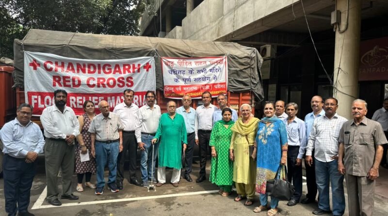 चण्डीगढ़ (सुनील कुमार ) हिंदू पर्व महासभा, चण्डीगढ़ द्वारा पंजाब के बाढ़ पीड़ितों के लिए राहत सामग्री, जिनमें मुख्य रूप से दवाइयां, कंबल, गद्दे, स्टील के ग्लास व प्लेटस, कोकोनट ऑयल, जूते व चप्पलें इत्यादि एकत्र किए गए। राहत सामग्री से लदे ट्रकों को चण्डीगढ़ रेड क्रॉस के माध्यम से आज डिप्टी कमिश्नर निशांत कुमार यादव, आईएएस ने झंडा दिखाकर रवाना किया।