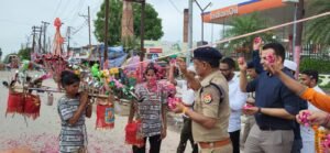 निशुल्क हेलमेट वितरण तथा कावंडियो पर पुष्प वर्षा करते हुए उनका स्वागत किया गया